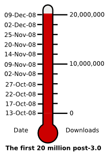 09 Dec 2008: The download thermometer hit the 20 million mark and will no longer be updated. For the latest statistics, see the Bouncer statistics.